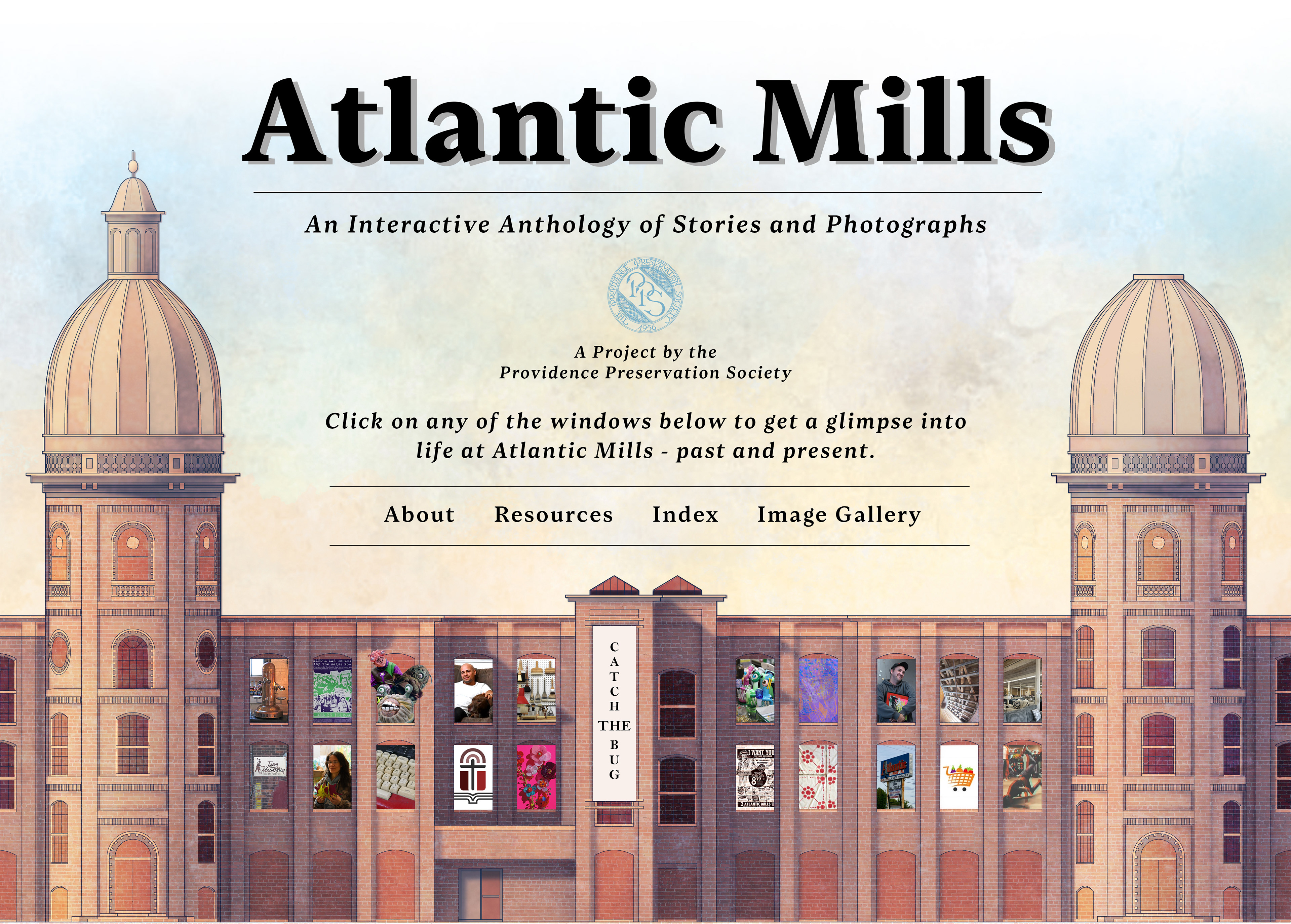 Created alongside journalists at the Providence Preservation Society, I developed a website with an interactive homepage illustration showcasing the vibrant community of Atlantic Mills — a former textile factory turned commercial business and artist hub.