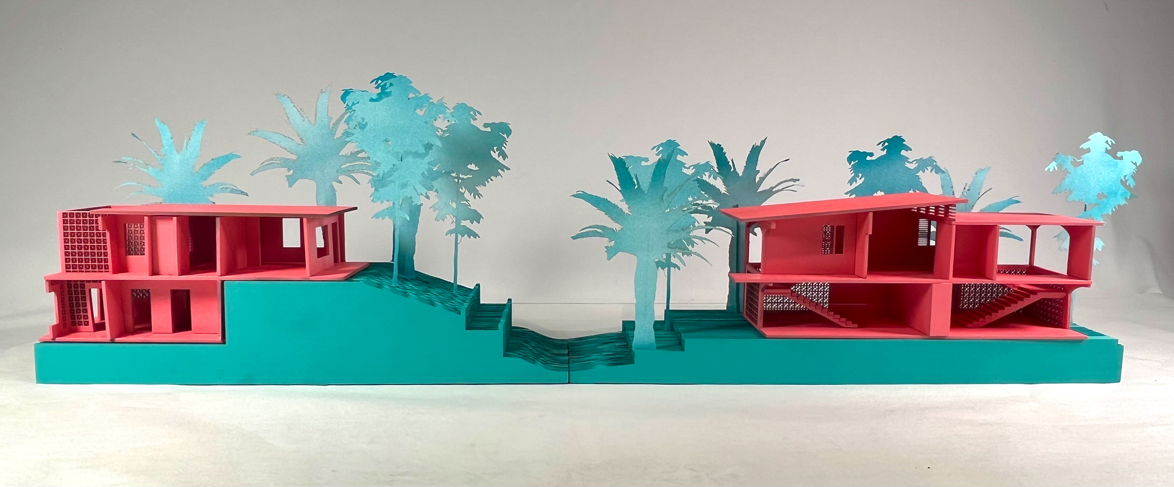 By taking existing plans of B.V. Doshi's Kamala House, I was able to create accurate three-dimentional drawings of the building as well as a variety of exploratory models representing massing and program in different ways.